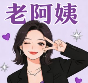 老阿姨 lǎo ā yí 本义指对年龄稍长的女性长辈的称呼;引申义指年轻女性自嘲或互称的网络用语,无实际年龄限制,常带有可爱、调侃的语气,也可指具有成熟生活经验的女性。 elder aunt (polite name for older women); self-deprecating term (young women's playful self-name onli...
