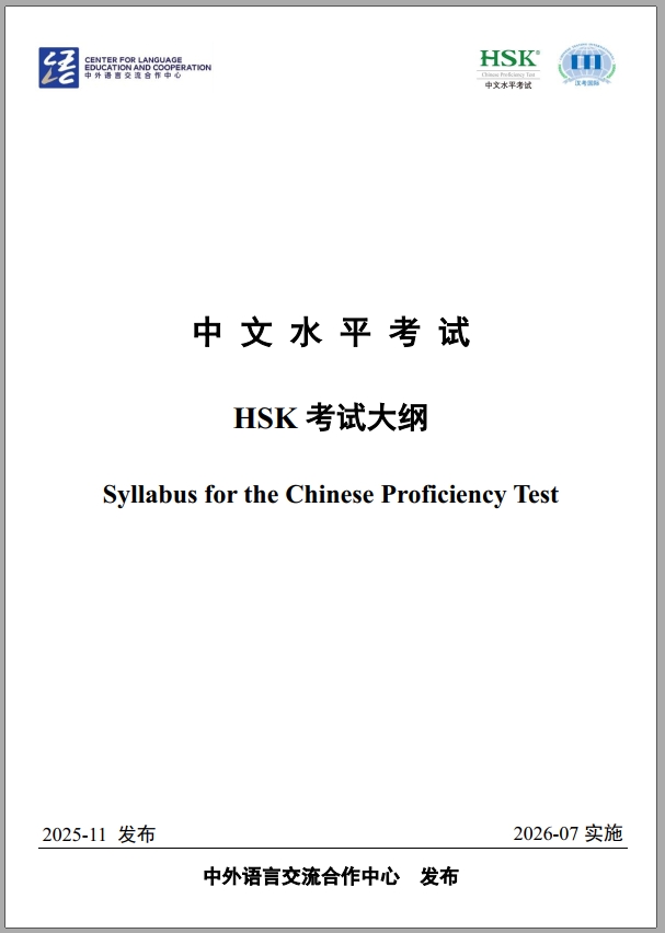 In November 2025, the Center for Language Education and Cooperation released the Syllabus for the Chinese Proficiency Test. You can download it here.